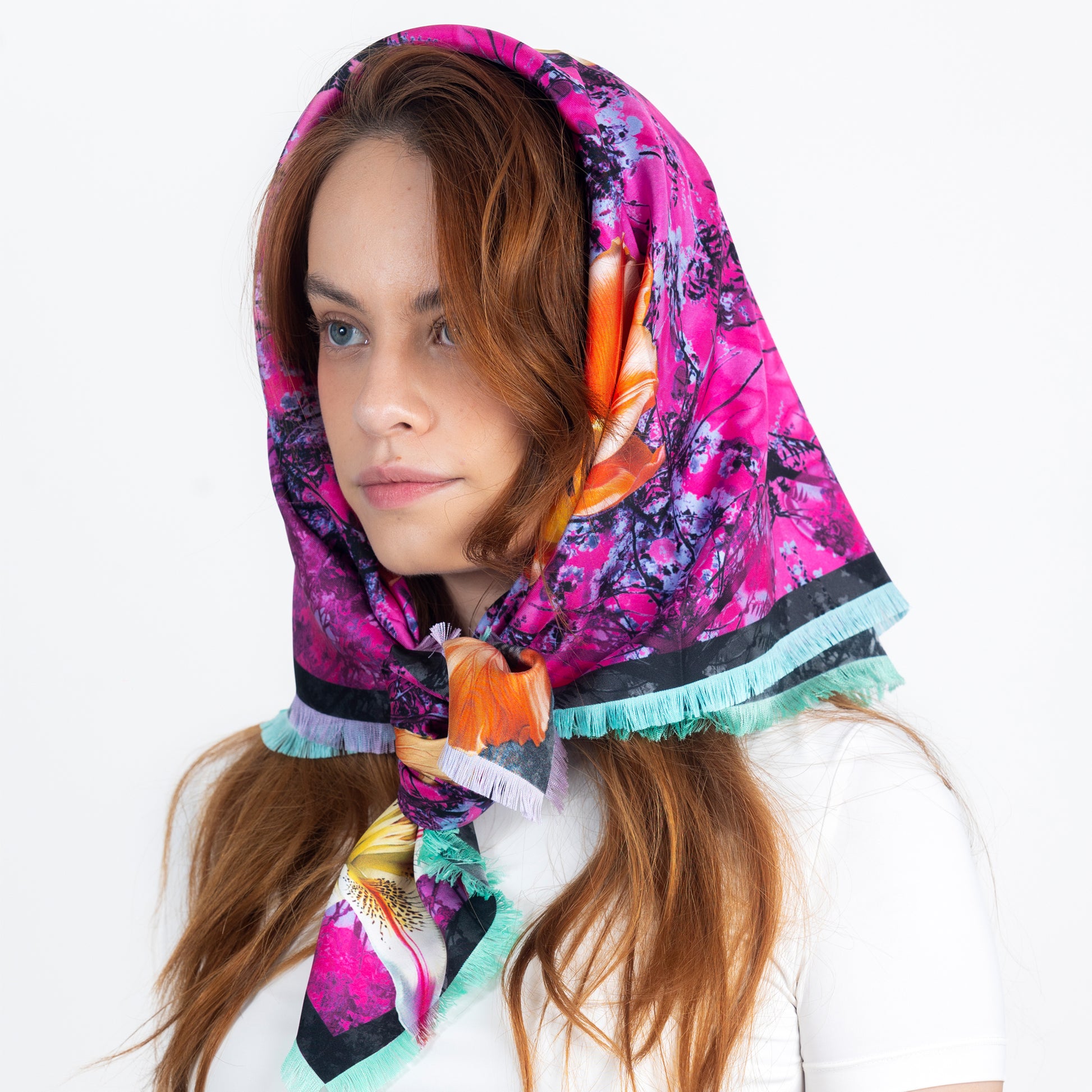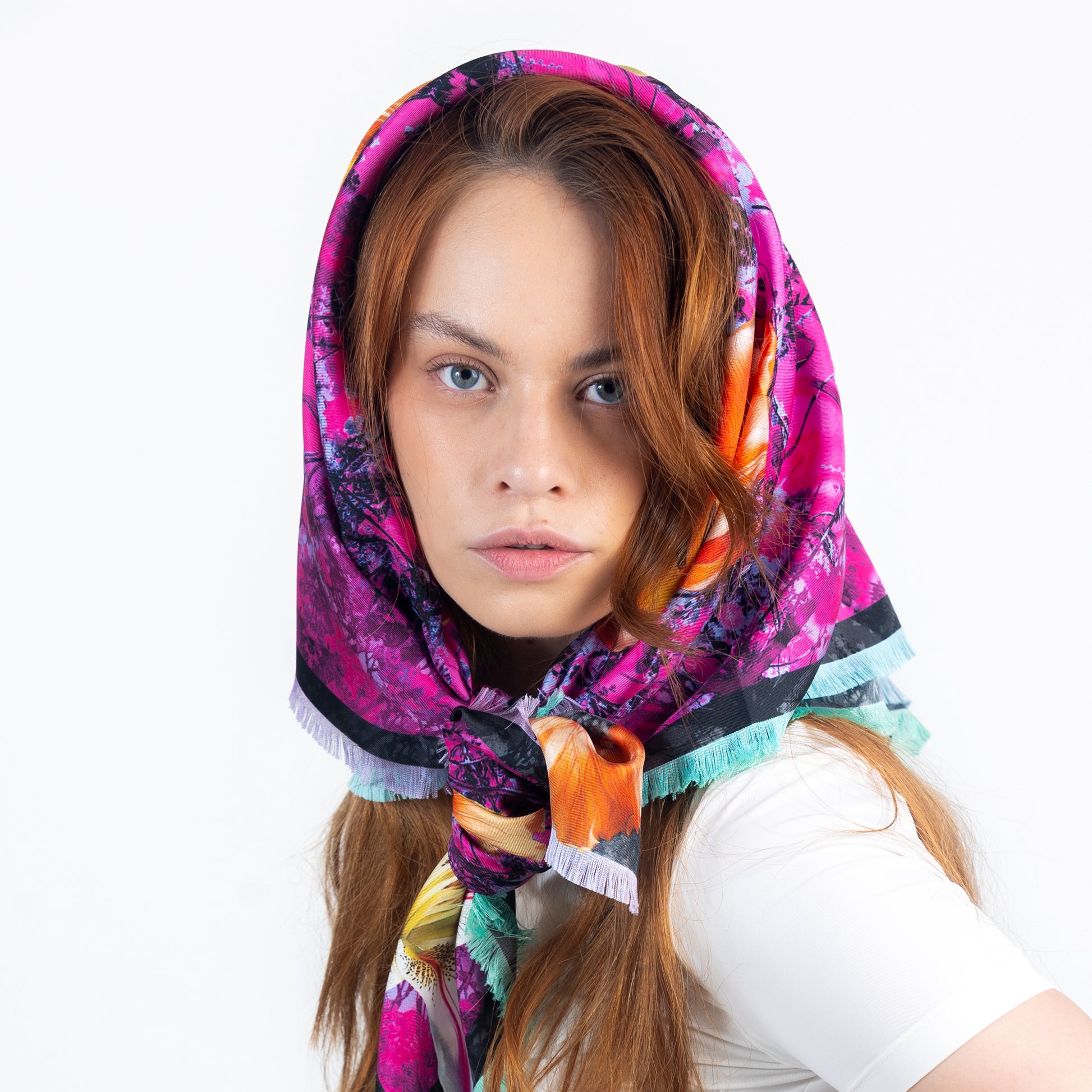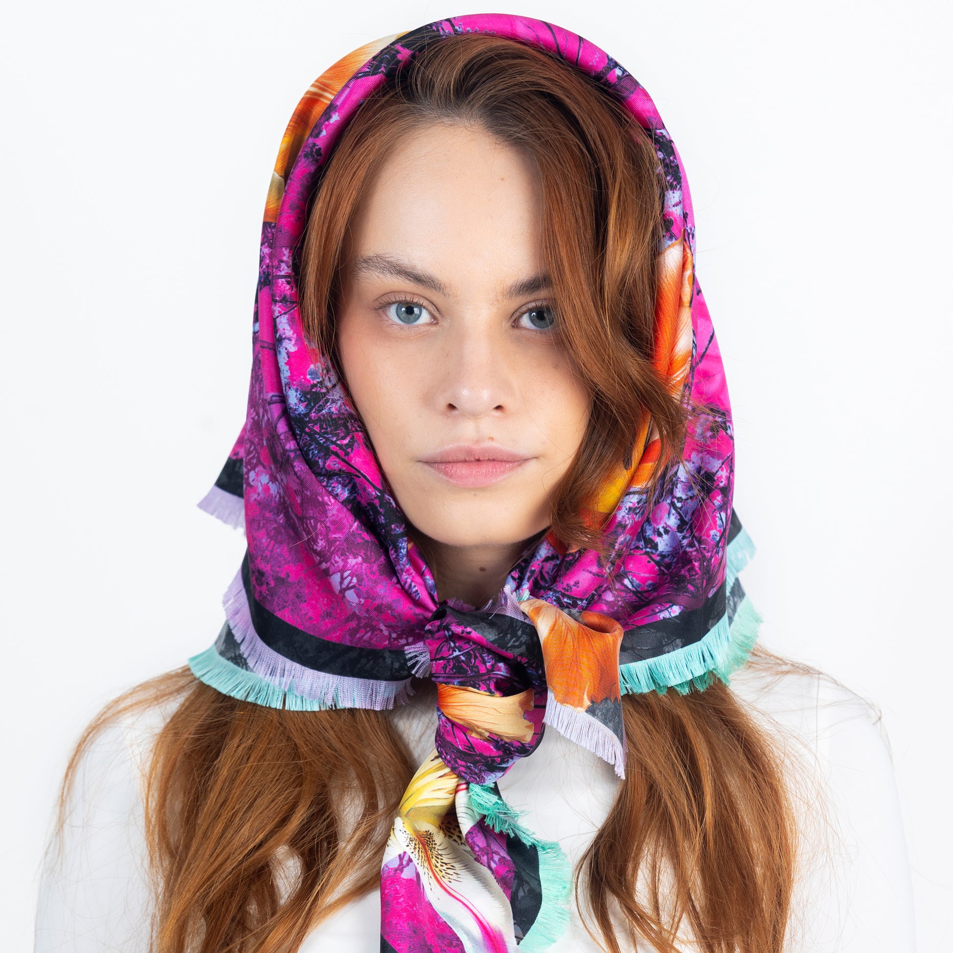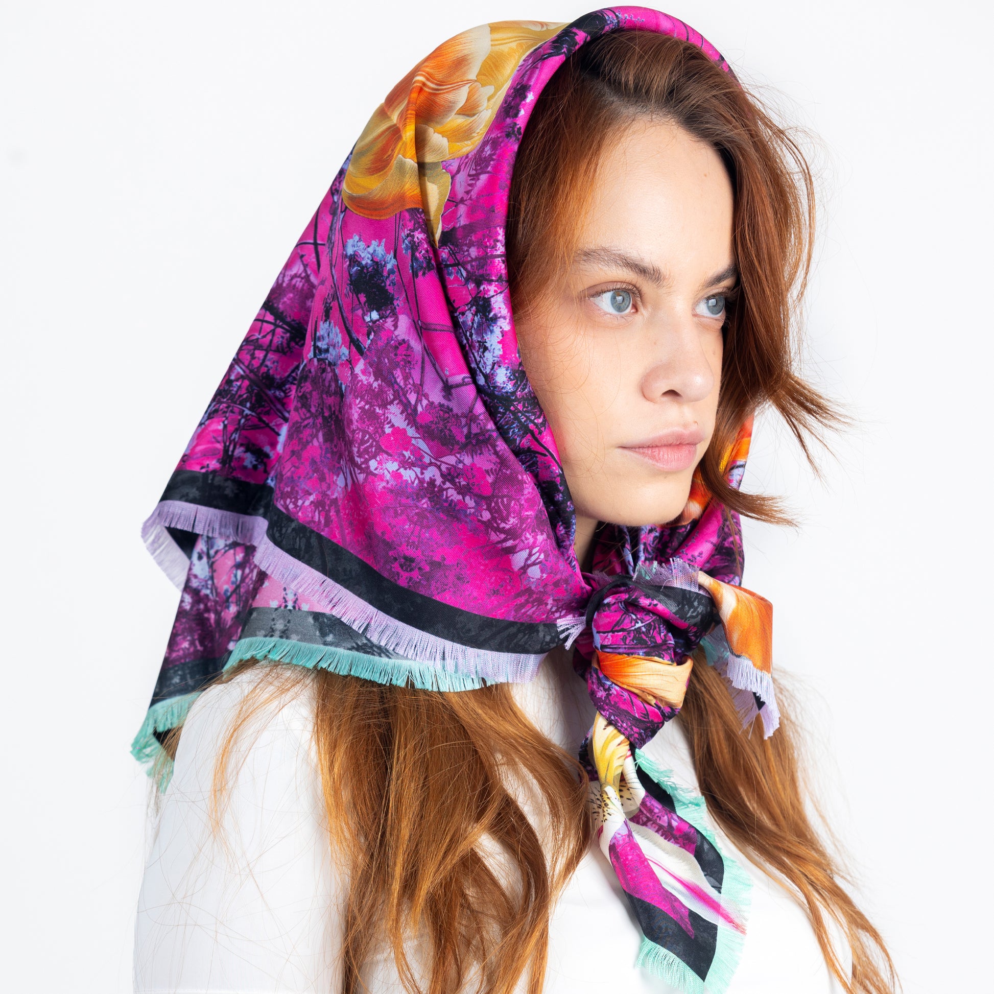 100% silk scarves made in Italy, measuring 90x90 cm.