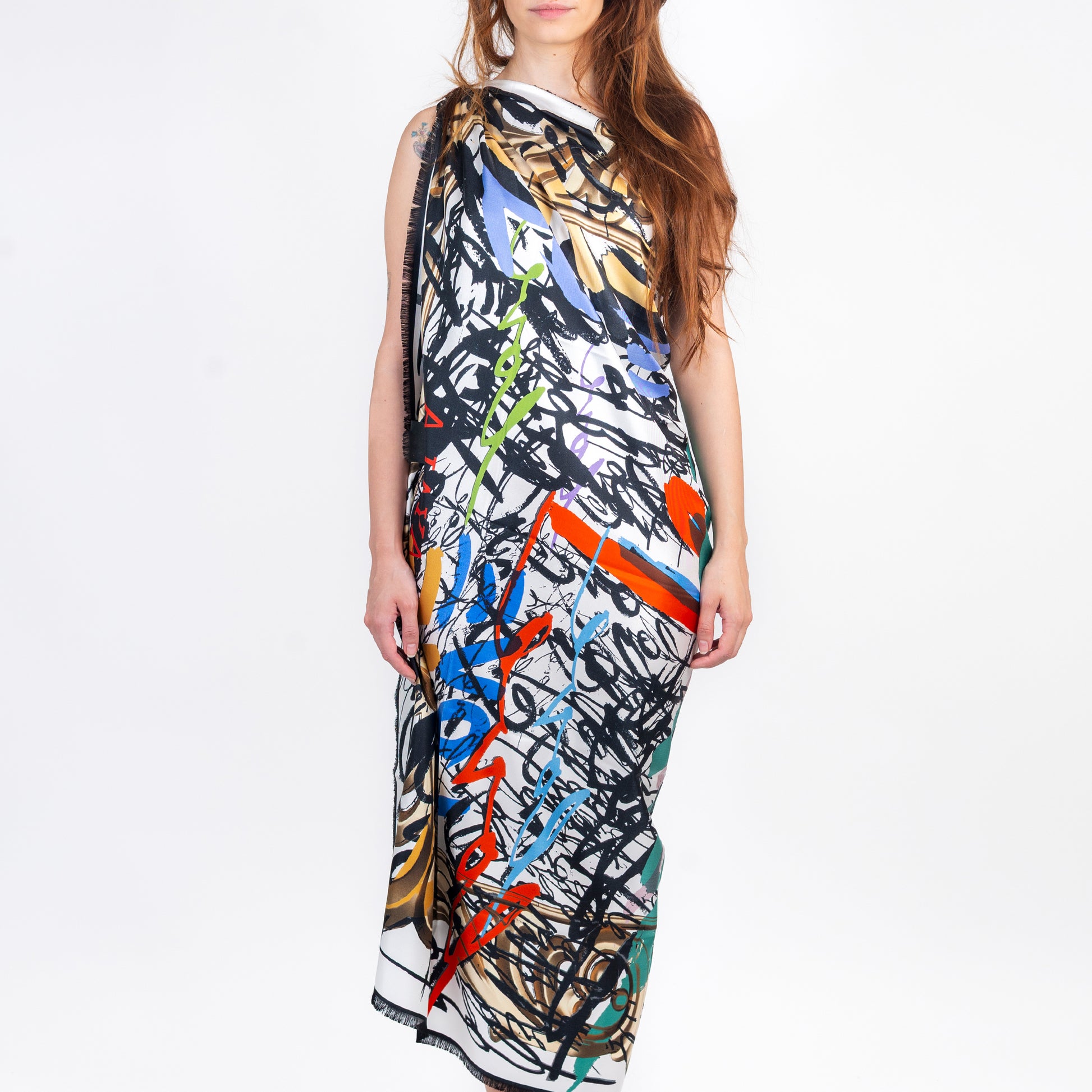 100% silk scarves made in Italy, measuring 140x140 cm.