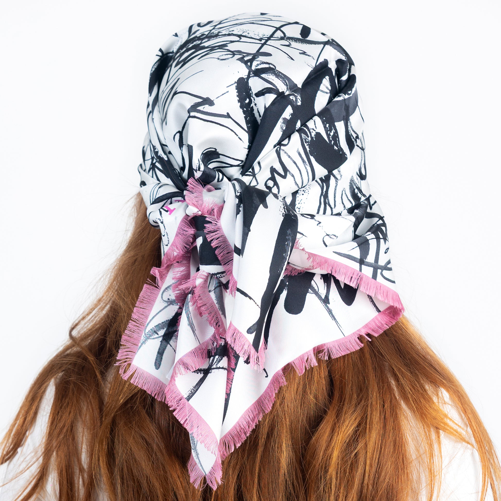 Foulards 100% soie fabriqués en Italie, mesurant 90x90cm.