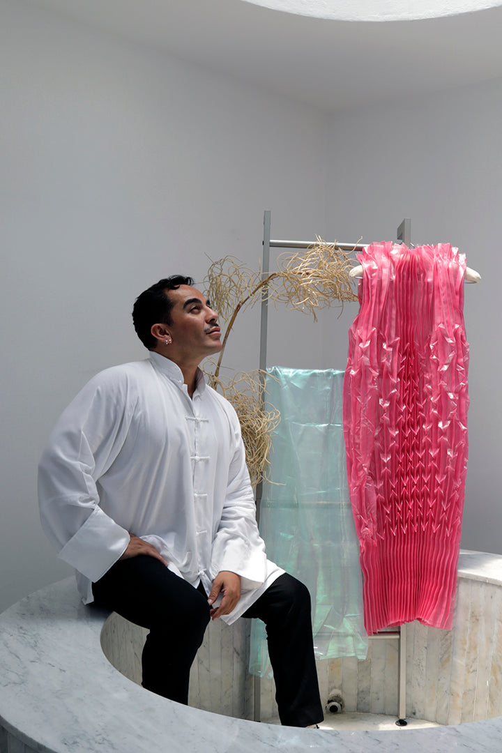 Formé à l’architecture, les arts appliqués et au business of fashion, il développe une démarche à 360 degrés nourrie par son œil aiguisé, son sens de la beauté et son multiculturalisme.